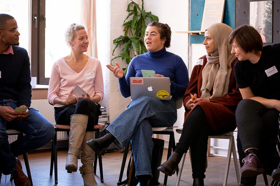 Am zweiten Tag standen allianzinterne Themen im Fokus. In den von AG-Mitgliedern organisierten Workshops wurde zu verschiedenen Themen gearbeitet – die AG Bildung bot einen Workshop zu „Empowerment und Powersharing” (Sabrina Rahimi) an, die AG Sicherheitsbehörden diskutierte über die „Kooperationen der Zivilgesellschaft mit der Polizei” (Ikram Errahmouni-Rimi) und die AG Kommunikation tauschte sich über „Strategien und Solidarität bei (Online) Hate Speech” (Nava Sadat Zarabian, Bildungsstätte Anne Frank) aus.