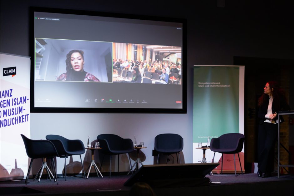 Anschließend präsentierte Dermana Kurić die von CLAIM im Rahmen des Kompetenznetzwerks Islam- und Muslimfeindlichkeit (KNW IMF) in Auftrag gegebene Studie mit dem Titel „Zivilgesellschaftliche Erfassungs- und Auswertungsverfahren zu Rassismus und Diskriminierung“. Diese befasst sich damit, wie Melde- und Beratungsstellen in Deutschland unterschiedliche Rassismen, Antisemitismus, Ableismus sowie LSBTIQ*-Feindlichkeit erfassen und auswerten. Zugleich analysiert die Studie, wie zivilgesellschaftliche Stellen und die Polizei antimuslimischen Rassismus im Vereinigten Königreich dokumentieren und auswerten. Ziel der Erhebung war es, good practices, aber auch Herausforderungen mit Blick auf Falldatenerfassung und -auswertung sowie Kooperationen zu identifizieren und zu vergleichen.