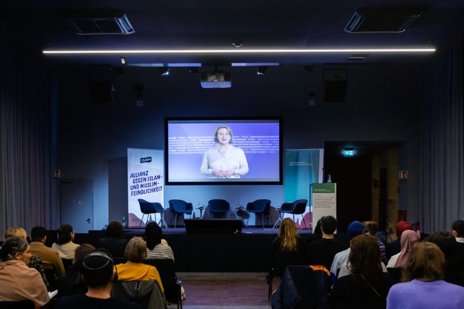 In Ihrer Begrüßungsrede betonte die Leiterin von CLAIM, Rima Hanano, die Relevanz der Dokumentation und Sichtbarmachung von Rassismen und ebenso das Ziel der Veranstaltung, den Raum für Diskussionen rund um das Thema zu öffnen und um weitere Perspektiven zu ergänzen. Es folgten Grußworte der Bundesfamilienministerin Lisa Paus und der unabhängigen Bundesbeauftragten für Antidiskriminierung und Leiterin der Antidiskriminierungsstelle des Bundes, Ferda Ataman.