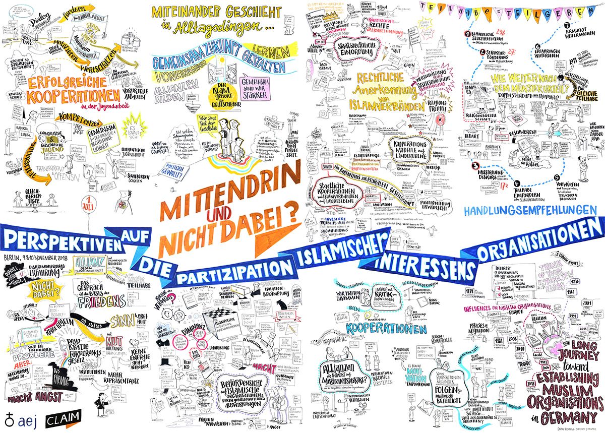 Mit welchen Herausforderungen haben muslimische Akteure zu kämpfen, wenn sie mit nichtmuslimischen Akteuren kooperieren? Wie steht es um die rechtliche Anerkennung von muslimischen Organisationen als Religionsgemeinschaften bzw. Körperschaften des öffentlichen Rechts? Wie kann man islamische Akteure dabei unterstützen die Integration in den rechtlichen Raum zu schaffen? Das waren die Kernfragen der Konferenz „Mittendrinn und nicht dabei?“, über die rund 100 Akteure der Zivilgesellschaft aus ganz Deutschland an zwei Tagen in Berlin diskutierten.