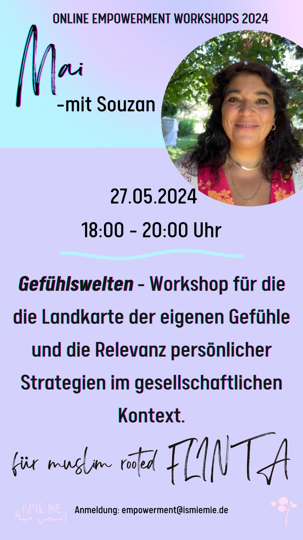 Im MAI erwartet euch Souzan AlSabah, um den Raum zu öffnen für die Landkarte der eigenen Gefühle und die Relevanz persönlicher Strategien im gesellschaftlichen Kontext.