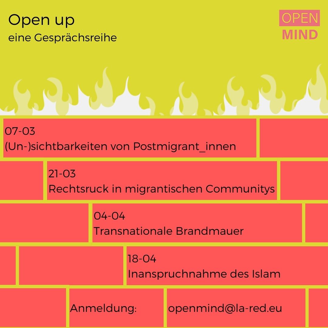 „Open up“ lädt zu ihrem Austauschformat für migrantische und Minderheitsperspektiven ein.