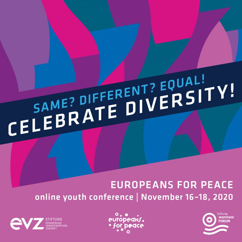 The EUROPEANS FOR PEACE program turns 15 this year. To celebrate, we invite you to join us for an exciting youth conference developed especially for the online space! With workshops hosted by experts who champion human rights, theme-based games, and interactive tools, we will be networking and debating concepts for a society where everyone is treated fairly and equally.