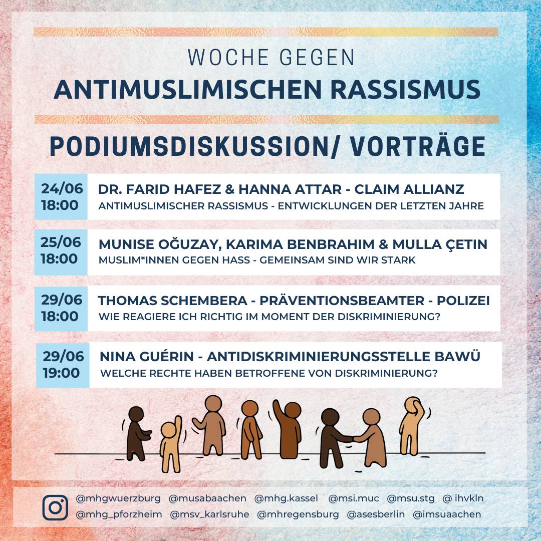 Zur Aktionswoche gegen antimuslimischen Rassismus hat die Hochschulgruppe IHV sich mit weiteren muslimische Hochschulgruppen zusammengetan um verschiedene Podiumsdiskussionen und Vorträge zu veranstalten.