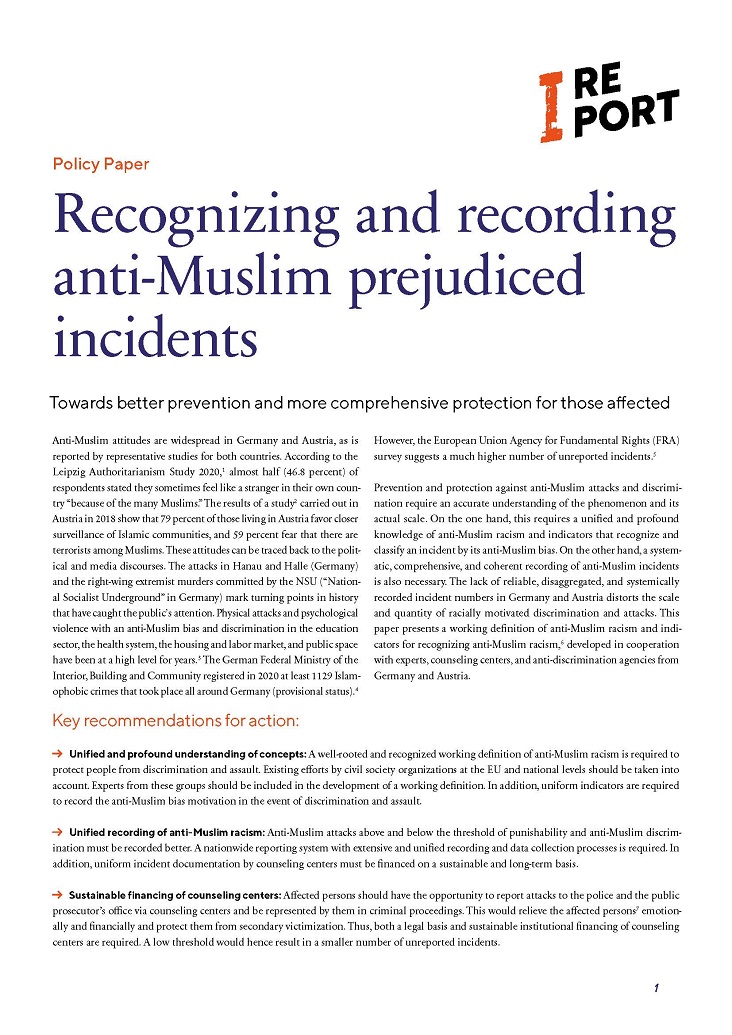 Die vorliegende Publikation erörtert die verschiedenen Begriffe und Theorien zu Islam- und Muslimfeindlichkeit, Gruppenbezogener Menschenfeindlichkeit und antimuslimischem Rassismus. Zusätzlich zu diesen oft verwendeten Konzepten erläutert die Publikation zudem die Kritik an einem bestimmten Säkularismusverständnis das sich ebenfalls gegenüber nicht-christlichen Religionspraxen benachteiligend auswirken kann.