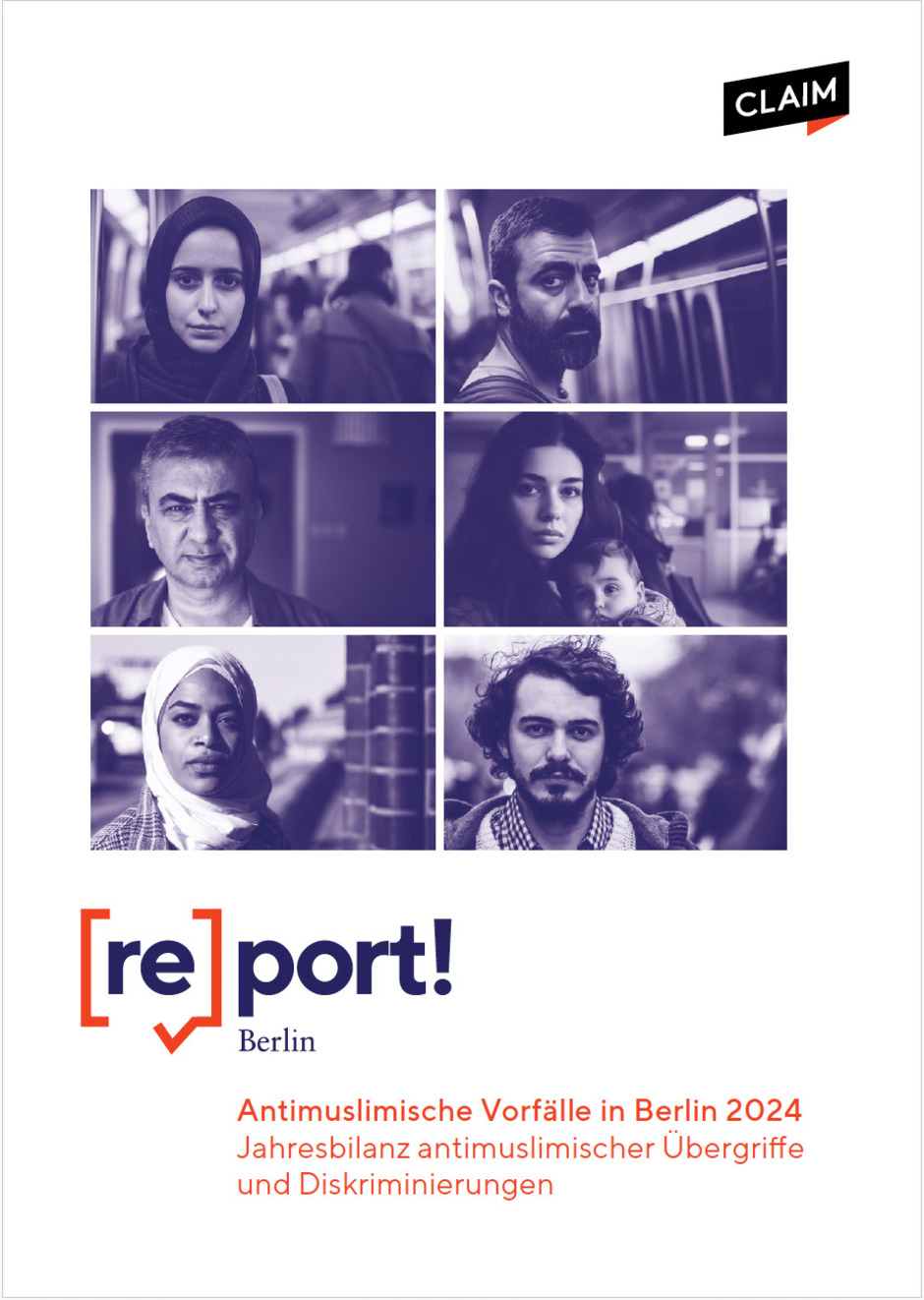 Über Report! Berlin: Die Melde- und Informationsstelle Report! Berlin dokumentiert antimuslimische Diskriminierungen und Übergriffe im Land Berlin, um antimuslimischen Rassismus in seinen intersektionalen Erscheinungsformen und Dimensionen sichtbar zu machen. Darüber hinaus qualifizieren wir Beratungs-, Anlauf- und Meldestellen in Berlin und stärken Community-Strukturen. Report! Berlin ist ein Projekt von CLAIM und wird seit Januar 2024 von der Senatsverwaltung für Arbeit, Soziales, Gleichstellung, Integration, Vielfalt und Antidiskriminierung im Rahmen des Berliner Landesprogramms gegen Rechtsextremismus, Rassismus und Antisemitismus der Landesstelle für Gleichbehandlung – gegen Diskriminierung (LADS) gefördert. Weitere Informationen unter www.report-amr-berlin.de